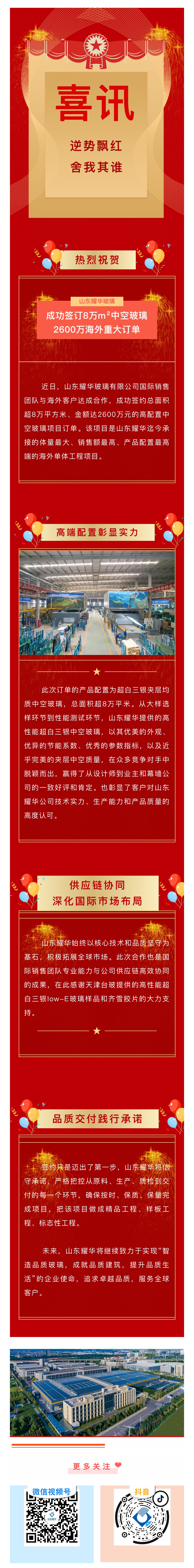 喜訊丨逆勢飄紅,舍我其誰!山東耀華成功簽訂8萬平米中空2600萬海外重大訂單