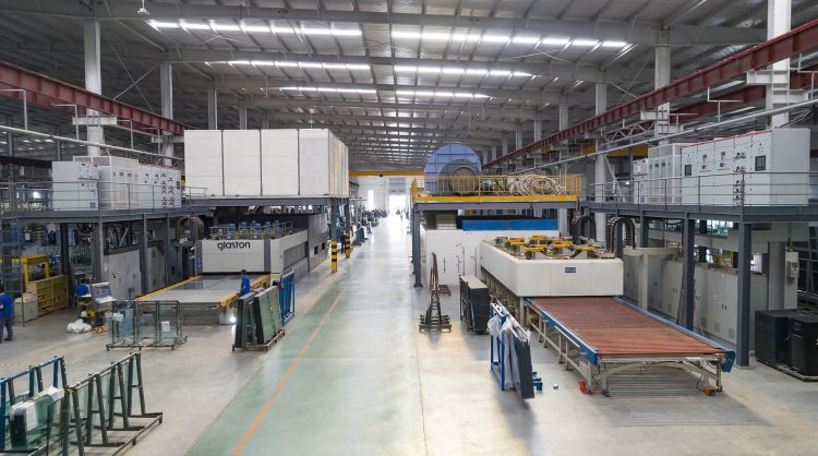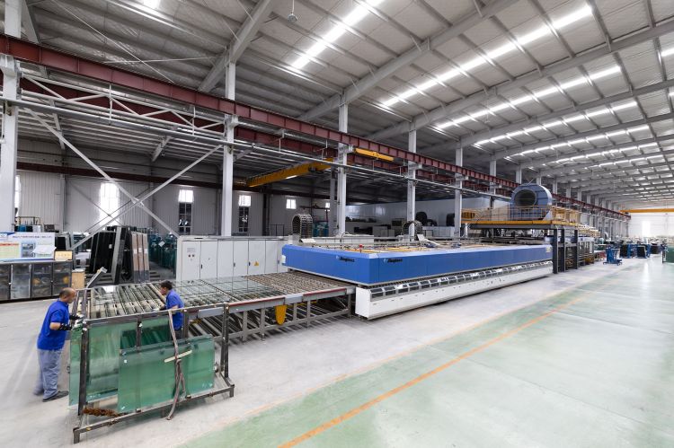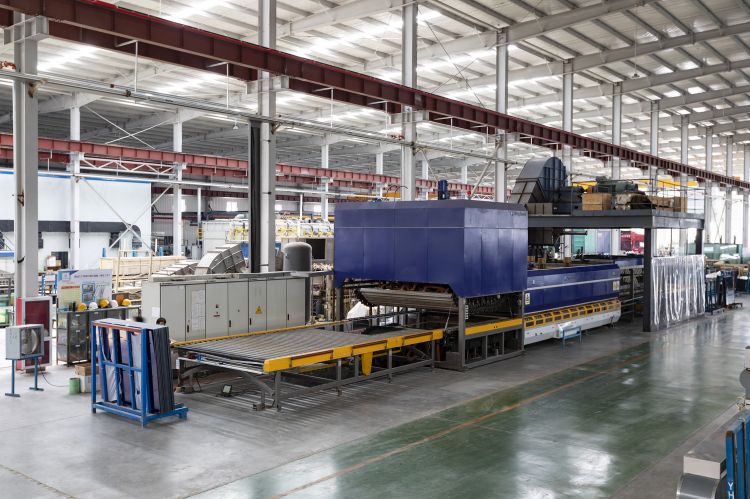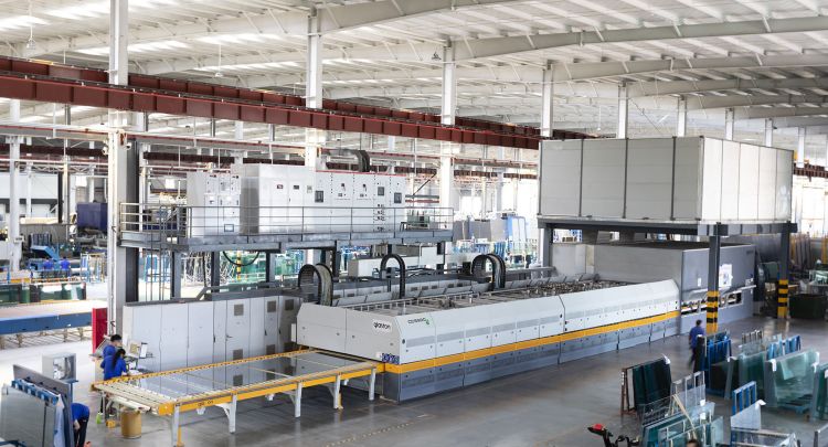 公司引進五條鋼化玻璃生產線(杭州精工雙室爐、正反雙向彎曲鋼化爐各一條,世界頂級GLASTON雙室、單室爐各一條,臺灣同昌三銀鋼化爐一條)