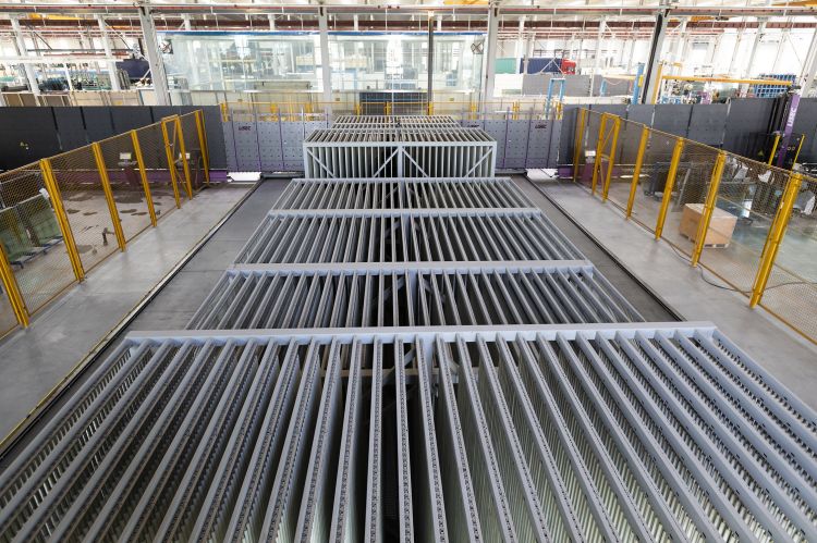 1、鋼化后的玻璃,經由測量段測量,自動存儲于分隔貯存架。